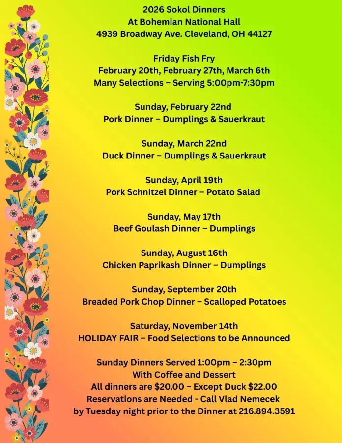 • Sokol Sunday Dinners 2026!
